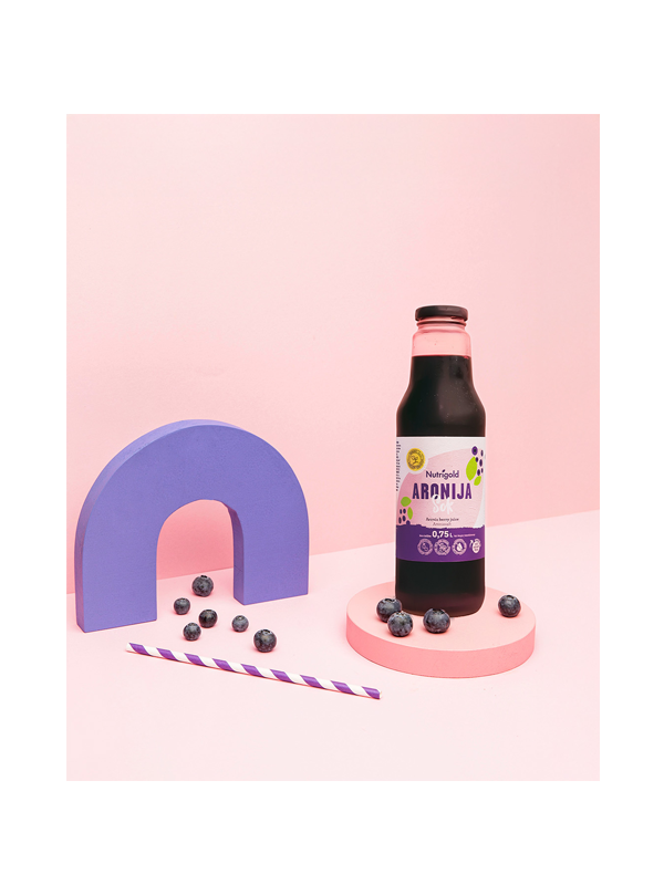 Nutrigold aronija sok je organski proizvod dobiven od 100% čiste hrvatske aronije, bez dodanog šećera, vode i konzervansa, proizvedena pod strogim uvjetima proizvodnje.