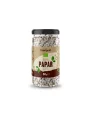 Nutrigold 100% organski bijeli papar proizvodi se posebnom tehnikom kojom se nakon potpunog sazrijevanja suši te namače u vodu kako bi otpala vanjska, tamna opna. Takav proces bijelom papru daje karakterističnu bijelu boju i nešto nježniju aromu jer se u ljuskicama nalaze esencijalna ulja zaslužna za njegovu ljutinu.