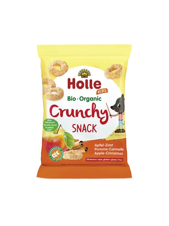 Holle hrskavi kolutići s jabukom i cimetom, ukusan su i hranjiv izbor za vaše najmlađe. Krase ih pomno birani sastojci iz organskog uzgoja: riža, leća, suncokretovo ulje, jabuka u prahu i cimet.
