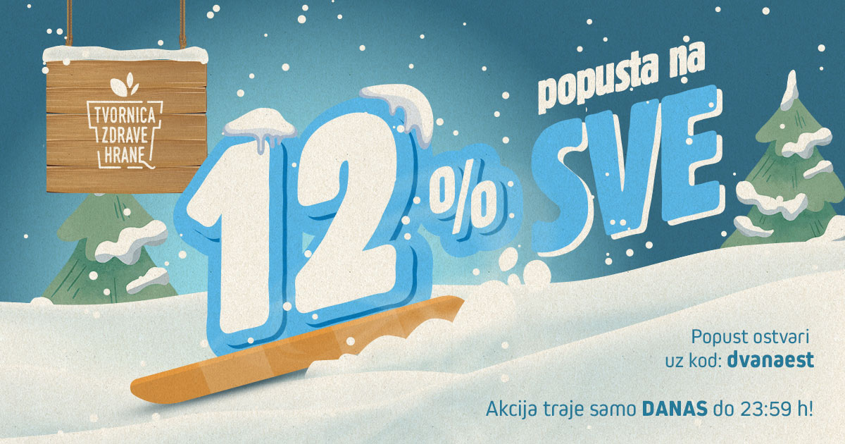 12 možda baš i nije neka čarobna brojka, ali kad joj staviš iza znak % nekako dobije smisao. Zar ne? Želimo svima zdravu i veselu kupovinu povoljniju za 12 %!