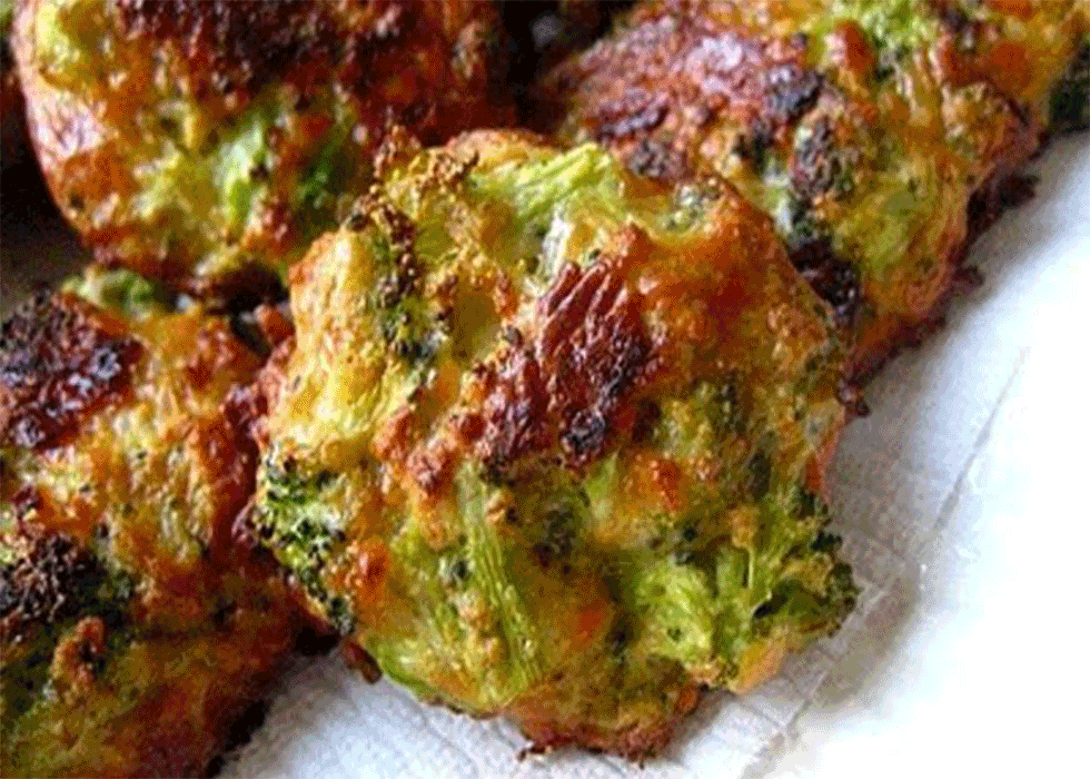 Priprema: Brokulu prekrijte vodom i nakon što voda zakuha, kuhajte 5-8 minuta. Iscijedite i ohladite, a za to vrijeme u zdjeli pomiješajte sve ostale sastojke: parmezan, luk, jaja, ghee maslac i začine. Ubacite cvjetove brokule i dobro promiješajte pa stavite u hladnjak na 1 sat da se smjesa dobro poveže. Na pleh na papir za pečenje stavite brokulu i pecite 20 minuta na 165 stupnjeva.