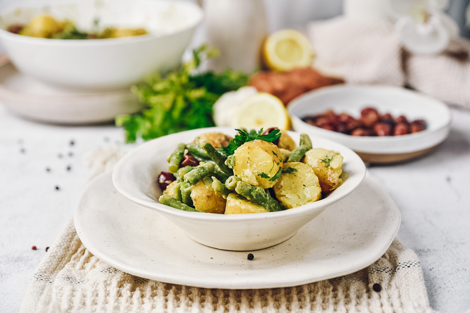Bogata, ukusna i zasitna mediteranska salata kojoj je podloga kuhani krumpir, pružit će vam cijeli spektar okusa koji će vas iznenaditi svakim novim zalogajem jer se u ovoj salati spajaju kapare, masline, mahune, peršin s mladim krumpirom, a sve je dodatno začinjeno ukusnim dresingom od maslinovog ulja, senfa, limunovog soka, jabučnog octa i češnjaka.
