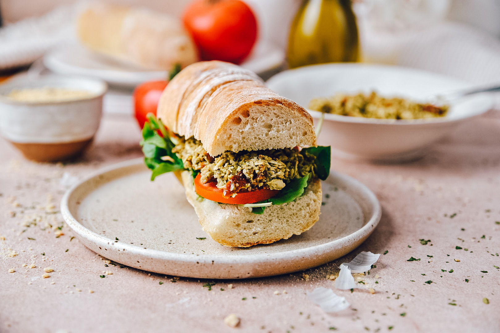 Osim što je nevjerojatno ukusan, ovaj sendvič s tofuom i pestom prepun je zdravih sastojaka i što je najvažnije razveselit će vas i zasitit! Tofu ili sir od soje je bogat proteinima, sadrži malo masnoća, a zbog svog blagog, neutralnog okusa omiljena je namirnica veganske i vegetarijanske kuhinje.