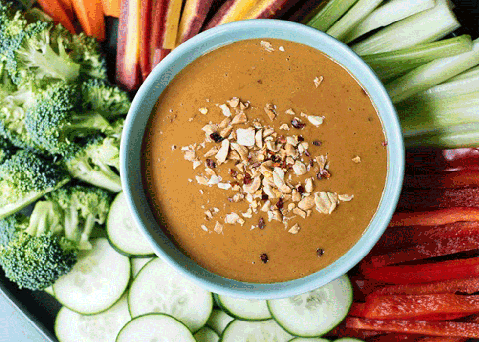Pomiješajte prvo kikiriki maslac i chilli umak pa onda sve ostale sastojke u zdjeli i na kraju po želji dodajte kikiriki.