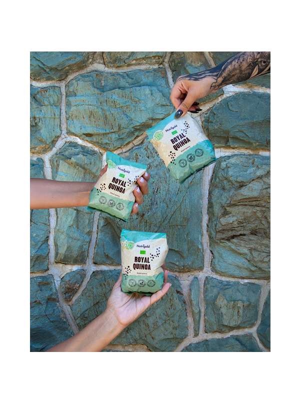 Nutrigold quinoa royal je okarakterizirana vrhunskom kvalitetom koja sadrži 100% bijele sjemenke kvinoje iz certificiranog organskog uzgoja.