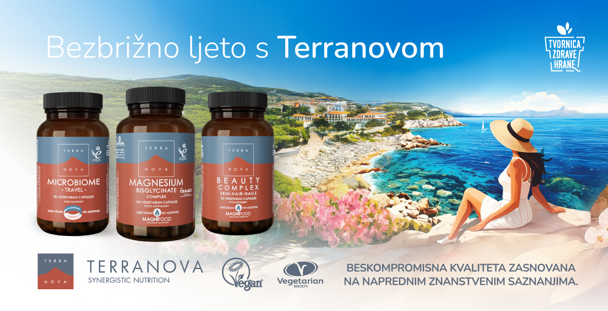Također, svi proizvodi brenda Terranova su 100% veganski, što znači da je sve dobiveno iz biljnog ili mikrobnog izvora, bez iznimaka! Jedna od ključnih posebnosti Terranove je Magnifood kompleks – pažljivo osmišljena mješavina ljekovitog bilja, algi i gljiva, koja sinergijski podržava apsorpciju i djelovanje osnovnih sastojaka u proizvodu. Većina biljaka u Magnifoodu obrađuju se liofilizacijom, metodom sušenja zamrzavanje, koja čuva njihovu punu nutritivnu vrijednost, enzimatsku i biokemijsku stabilnost. Na taj način osigurano je dobivanje prirode u njenom najučinkovitijem obliku u svakoj kapsuli Terranova dodataka prehrani.