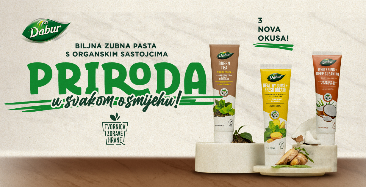 Bez floura, parabena, SLS-a i sa pažljivo odabranim organskim sastojcima, Dabur paste za zube nude prirodno rješenje za vaše dentalne probleme.