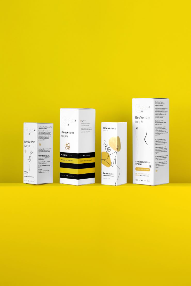 Nakon svih saznanja o pčelinjem otrovu, uz pomoć velikog broja stručnjaka iz segmenata kozmetike, kemije i farmacije, kreirane su BeeVenom touch kreme s tim specifičnim prirodnim sastojkom. Nakon višegodišnjeg istraživanja i kontrole kvalitete proizvoda, tržište su 2021. godine ugledala četiri proizvoda na bazi pčelinjeg otrova, a to su: krema za masažu, krema za lice, serum za lice i anticelulitna krema.