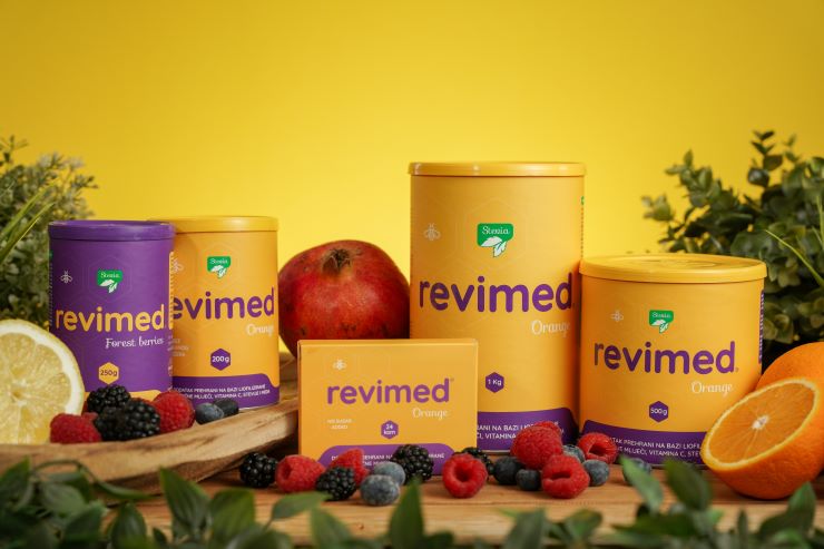 Preporučuje se svim uzrastima, djeci (već od 12 mjeseci starosti), ženama, trudnicama, starijim osobama, rekonvalescentima, sportašima i svima koji su izloženi svakodnevnom stresu. Dostupan je i REVIMED® Stevia Fe sa stevijom kao sladilom, koji je pogodan i za dijabetičare. Za još bolje učinke željezu pridružite i REVIMED® Orange ili REVIMED® Stevia Orange. Prirodni visokokvalitetni dodatak prehrani na osnovi liofilizirane BIO matične mliječi, dehidriranog meda, stevije i vitamina C za pripremu napitka s okusom naranče. Namijenjen je svima koji teže zdravom načinu prehrane te žele unaprijediti ili očuvati dobro stanje organizma i snažan imunitet tijekom dužeg vremenskog razdoblja.