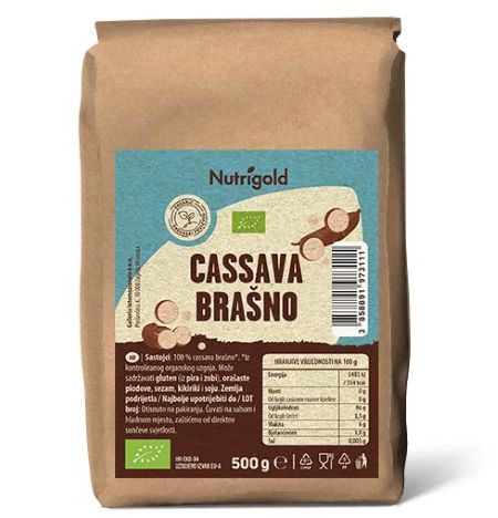Brašno cassave ili manioke koristi cijeli blanširani dio korijena biljke i ima jednostavniji sastav od tapioka brašna. Korijen se suši i melje kako bi se dobilo brašno fine teksture, koje je odlična veganska zamjena bez glutena za recepte koji koriste pšenično brašno. Budući da brašno dolazi iz cijelog korijena, sadrži više vlakana te stoga podržava probavni sustav, kontrolira razinu šećera u krvi i snižava razinu kolesterola. U raznim receptima poboljšava teksturu hrane, a osim toga daje blag i ugodan okus orašastih plodova receptima. Zbog svoje bijele boje i neutralnog okusa, cassava brašno ne mijenja boju ili okus jela tijekom kuhanja i pečenja. Osim toga, zbog fine teksture, može se koristiti i kao zgušnjivač. Zahvaljujući izvrsnim nutritivnim vrijednostima, cassava brašno je odličan dodatak zdravijem načinu prehrane.