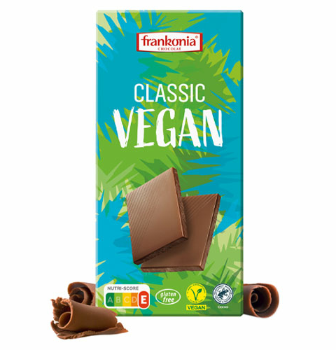 Veganska čokolada predstavlja slatku poslasticu koja ne sadrži životinjske proizvode poput mlijeka ili maslaca. Umjesto toga, veganska čokolada koristi alternative poput biljnog mlijeka, poput kokosa, badema ili soje, kako bi postigla kremastu teksturu i bogat okus. Osim što je pogodna za vegane, veganska čokolada često pruža i dodatne zdravstvene koristi. Budući da je bez mliječnih proizvoda, može biti lakša za probavu za neke ljude, a također može imati niži sadržaj zasićenih masti i kolesterola. Dostupna je u različitim okusima i varijantama, uključujući tamnu čokoladu, čokoladu s dodacima poput orašastih plodova ili sušenog voća, kao i bijelu čokoladu na bazi biljnog mlijeka ili vode.